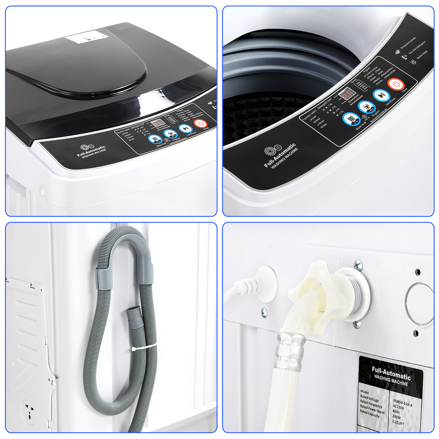This 2.1 Cu.ft portable washing machine combines powerful performance with space-saving design, making it ideal for apartments, dorms, and RVs. With 10 smart programs, LED display, 24-hour delay start, and automatic imbalance correction, it delivers professional washing results while being energy-efficient and user-friendly. Complete with easy installation accessories, dual handles for portability.