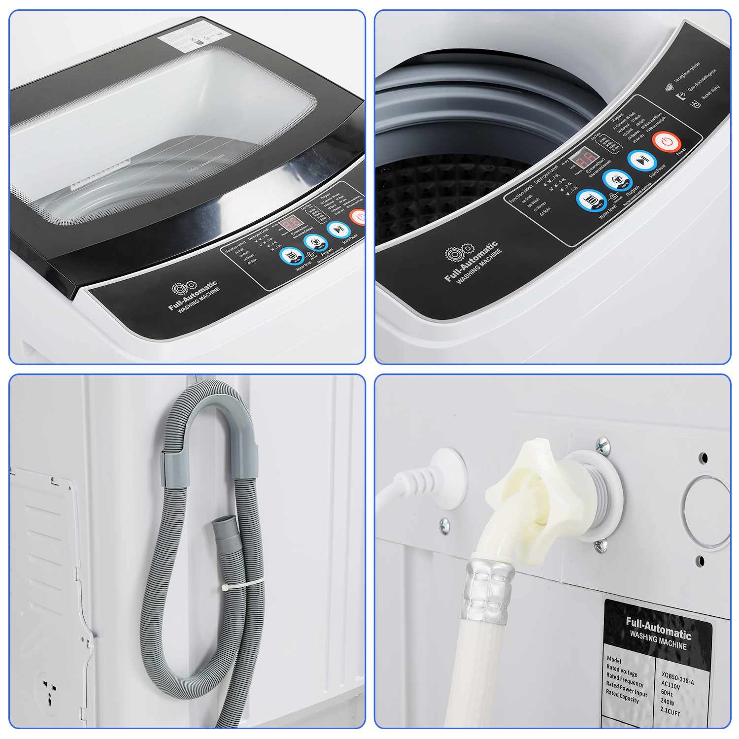 This full-automatic portable washer offers 8 water levels and 10 specialized wash cycles to perfectly match your laundry needs. From gentle cleaning for delicate fabrics to powerful deep cleaning for heavily soiled items, this compact machine delivers impeccable cleanliness while saving you precious time and energy.