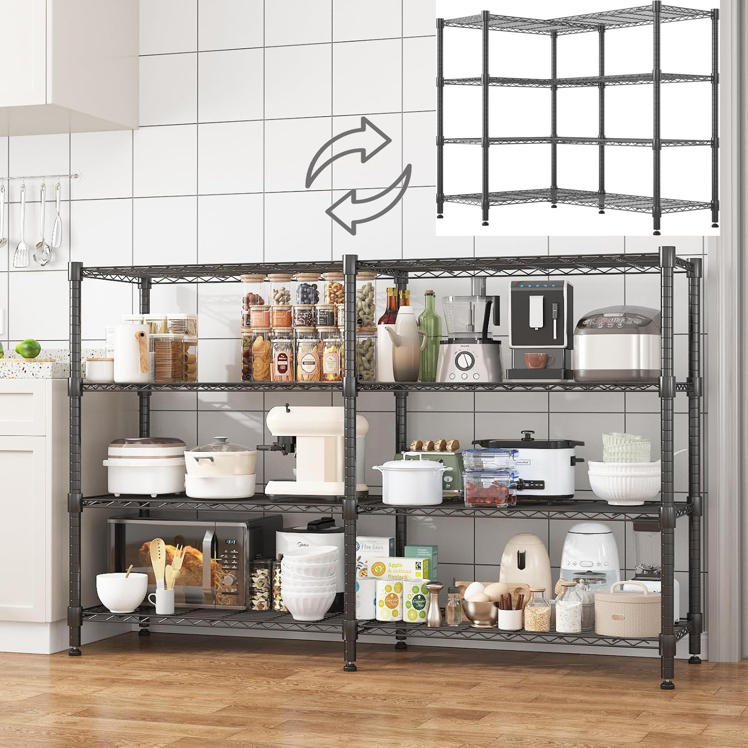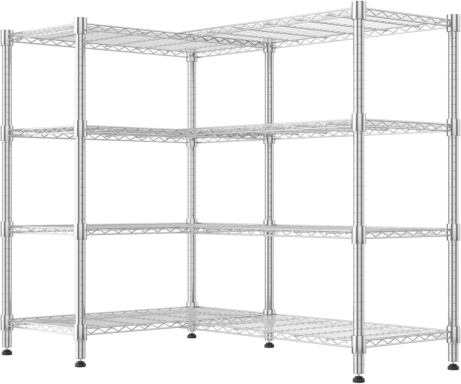 KRISRATE 4/5 Tier Wide Wire Shelving Storage Shelves Metal Closet/garage, 2-in-1 Linear/corner Setup Metal Shelves Heavy Duty w/ Adjustable Shelves