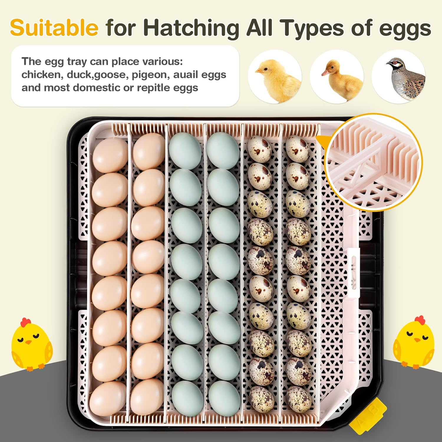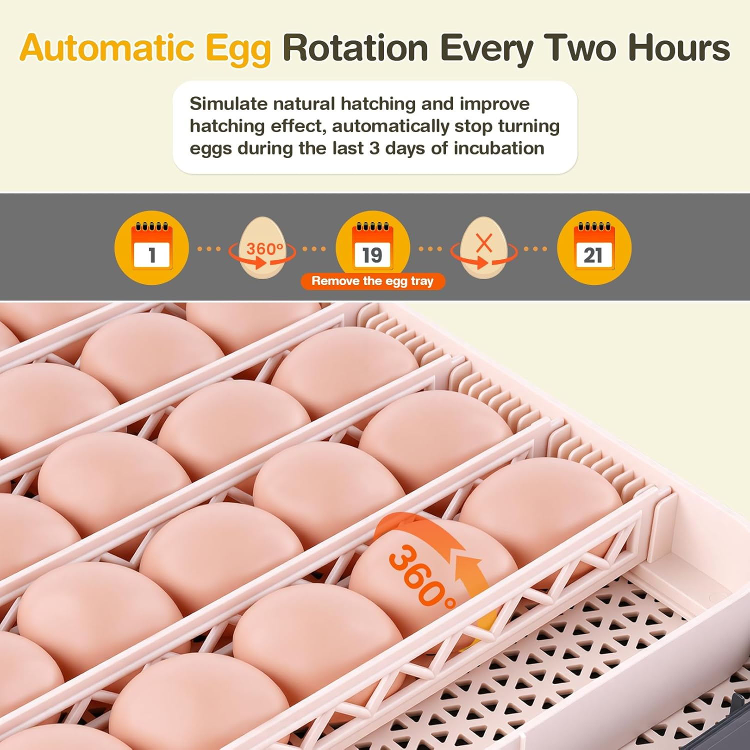 • 【360° Clear View & Stable Performance】 - Ultra-clear panoramic windows for easy observation. 80W motor with 360° air circulation ensures even temperature distribution and stable hatching conditions for optimal success rates.