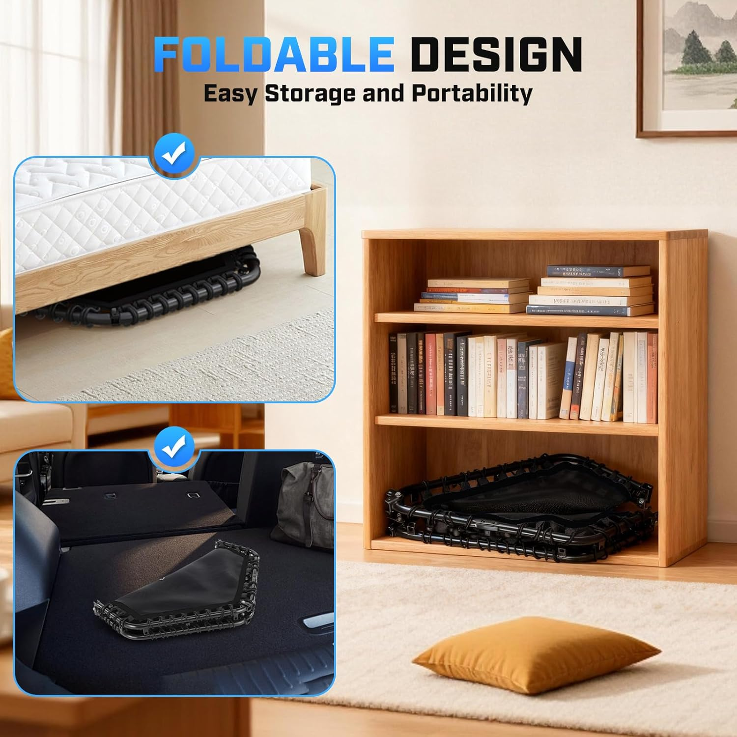 •【SPACE-SAVING FOLDABLE & QUICK ASSEMBLY】 - Unique foldable design reduces to less than quarter size for compact storage under beds, behind sofas, or in car trunks. Comes 80% pre-assembled requiring only 10 minutes final setup with no complicated tools, perfect for apartments and limited spaces.