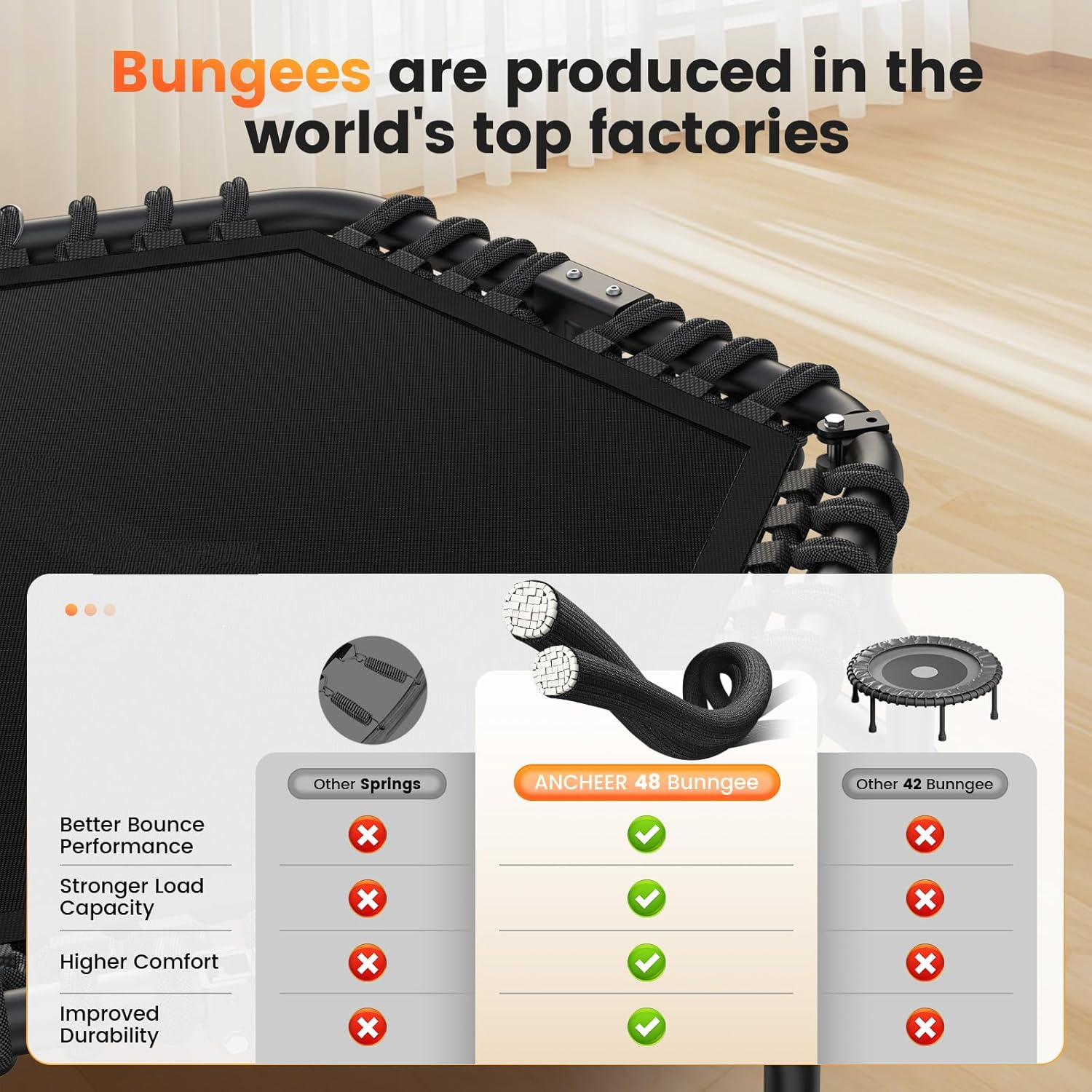 •【HEAVY-DUTY CONSTRUCTION & SUPERIOR SAFETY】 - Built with reinforced steel frame and secured by 48 high-strength bungee cords, rigorously tested for thousands of jumps. Waterproof jump mat and bent tube design enhance structural strength and stability for long-lasting durability and reliable performance.