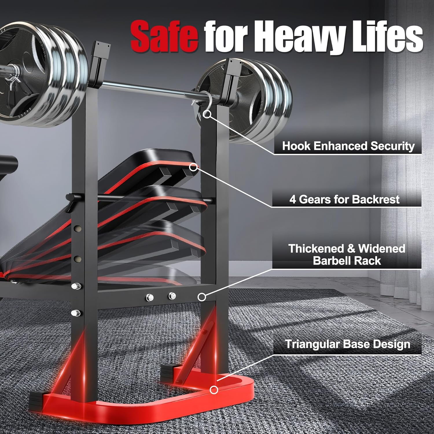 Safety Hook Design: Includes secure safety hooks to keep weights and equipment stable during use.