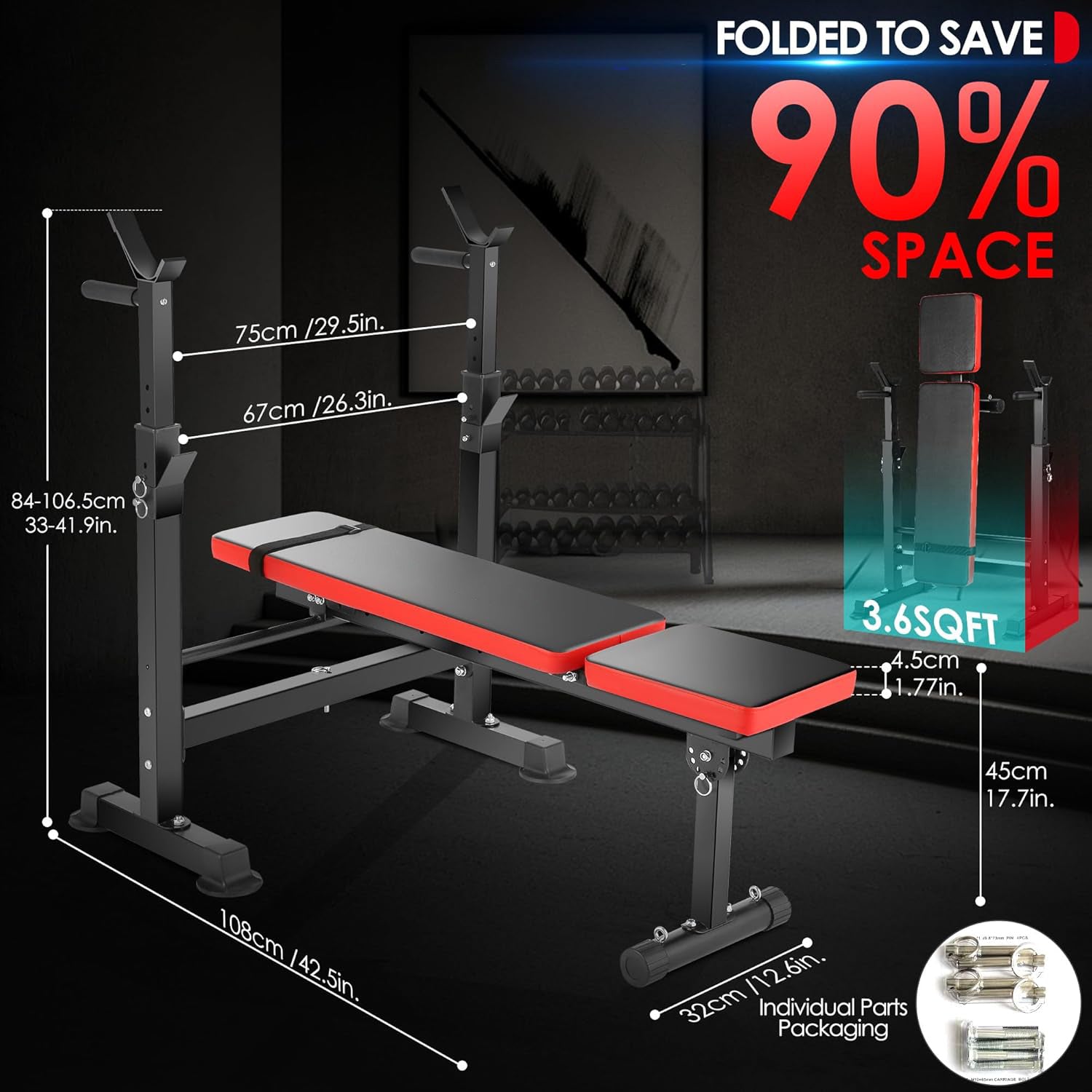 The KRISRATE 660lbs 6-in-1 Weight Bench Set delivers the ultimate home gym solution with versatile functionality that transforms into multiple workout stations including bench press rack, squat rack, preacher curl station, and leg developer, supporting comprehensive full-body training for chest, back, abs, arms, legs, and shoulders. Built with premium thickened tubular steel and featuring ergonomic memory foam cushions, it offers exceptional stability and comfort while folding to save 85% space when not in use. This cost-effective solution replaces multiple gym equipment pieces for efficient home strength training.