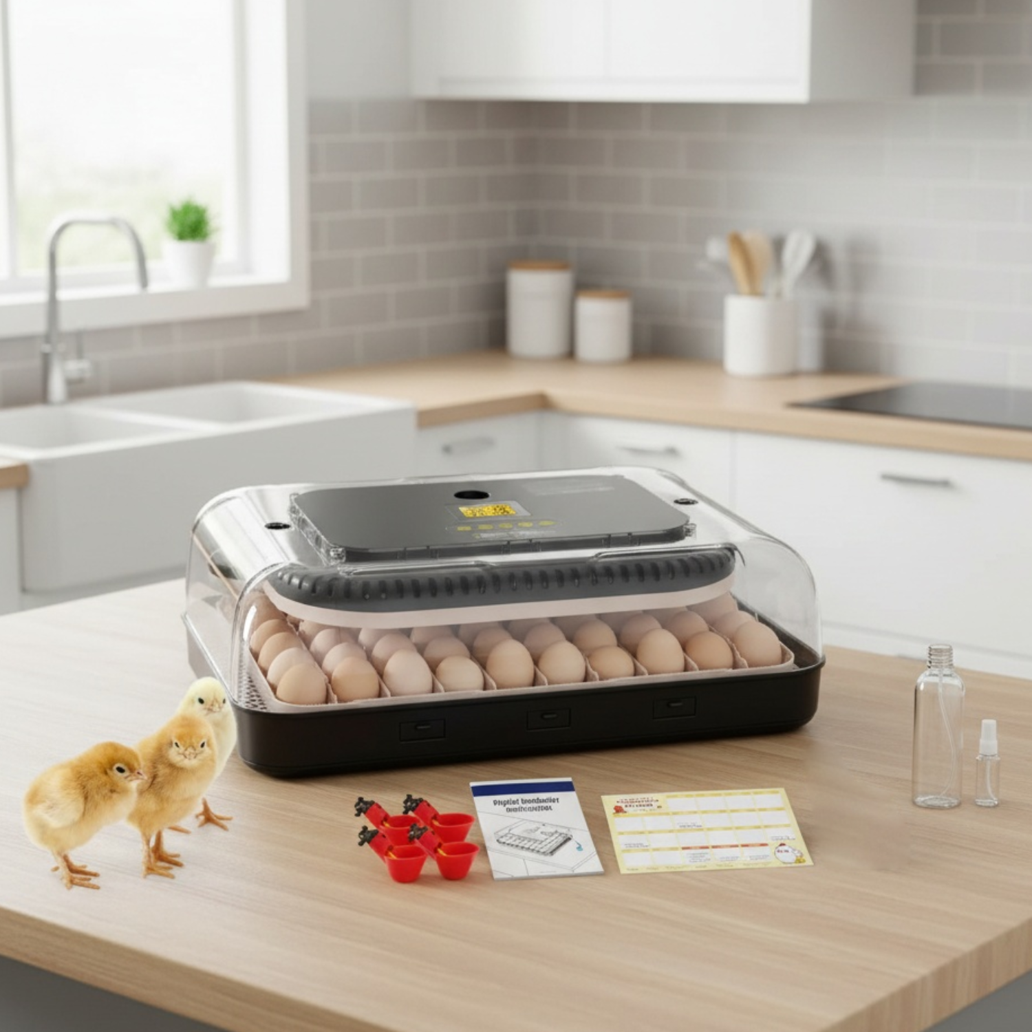 The 70-Egg Incubator combines advanced heating technology, automatic egg turning, and intelligent humidity control to deliver professional-grade hatching results. Featuring a built-in LED candler, smart alarm system, and durable ABS construction, this versatile incubator is perfect for hatching various poultry eggs including chicken, duck, goose, and quail, making it ideal for educational, farm, and home use.