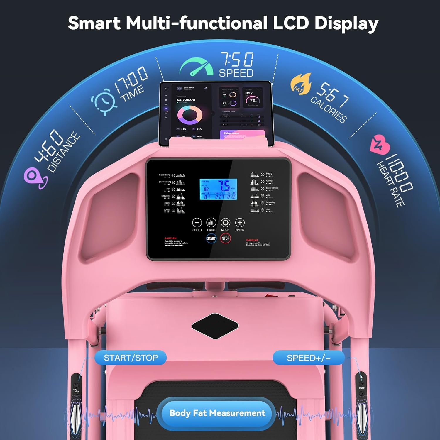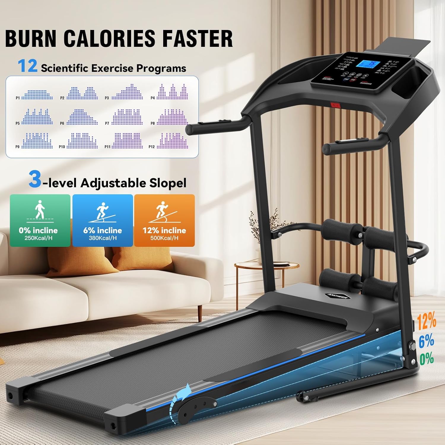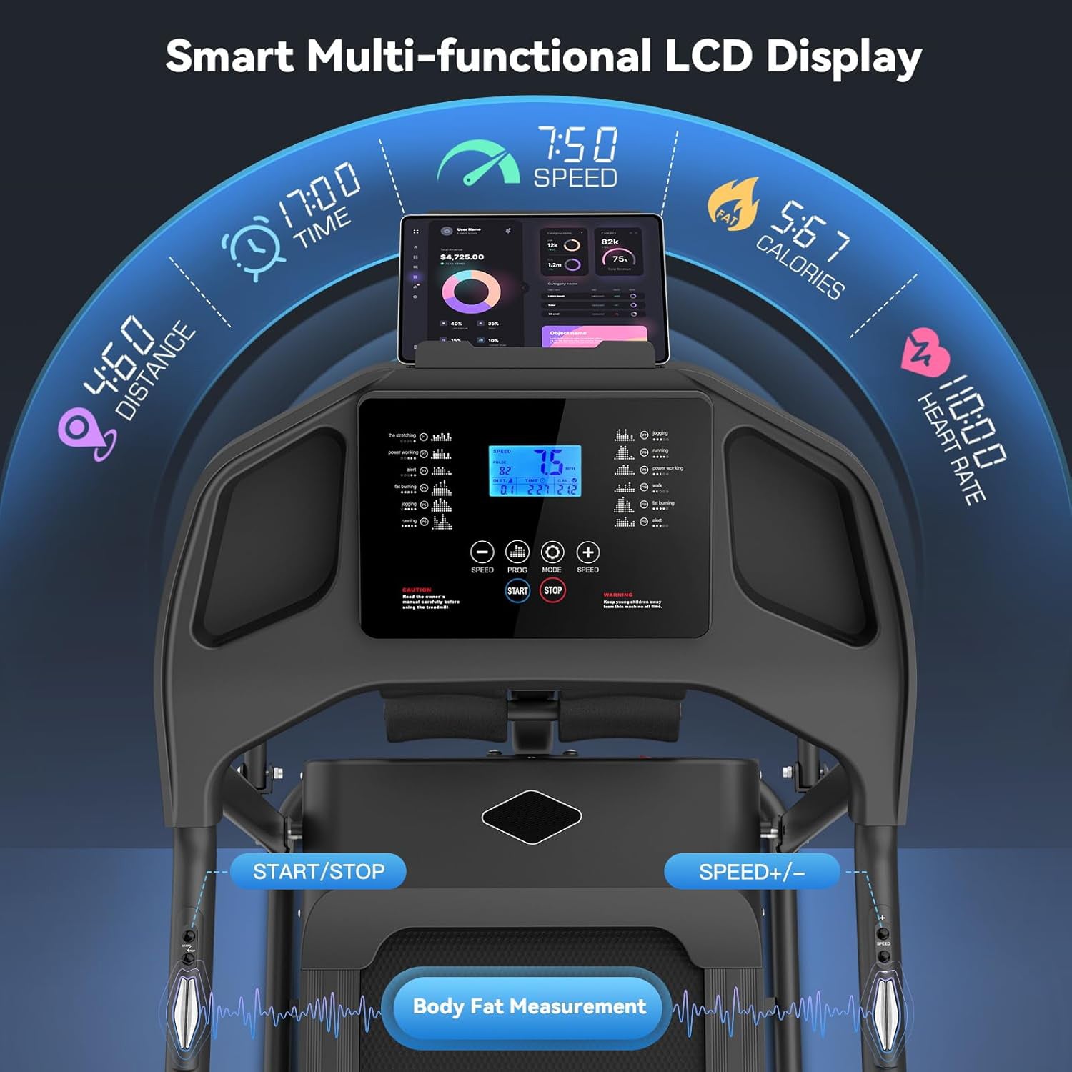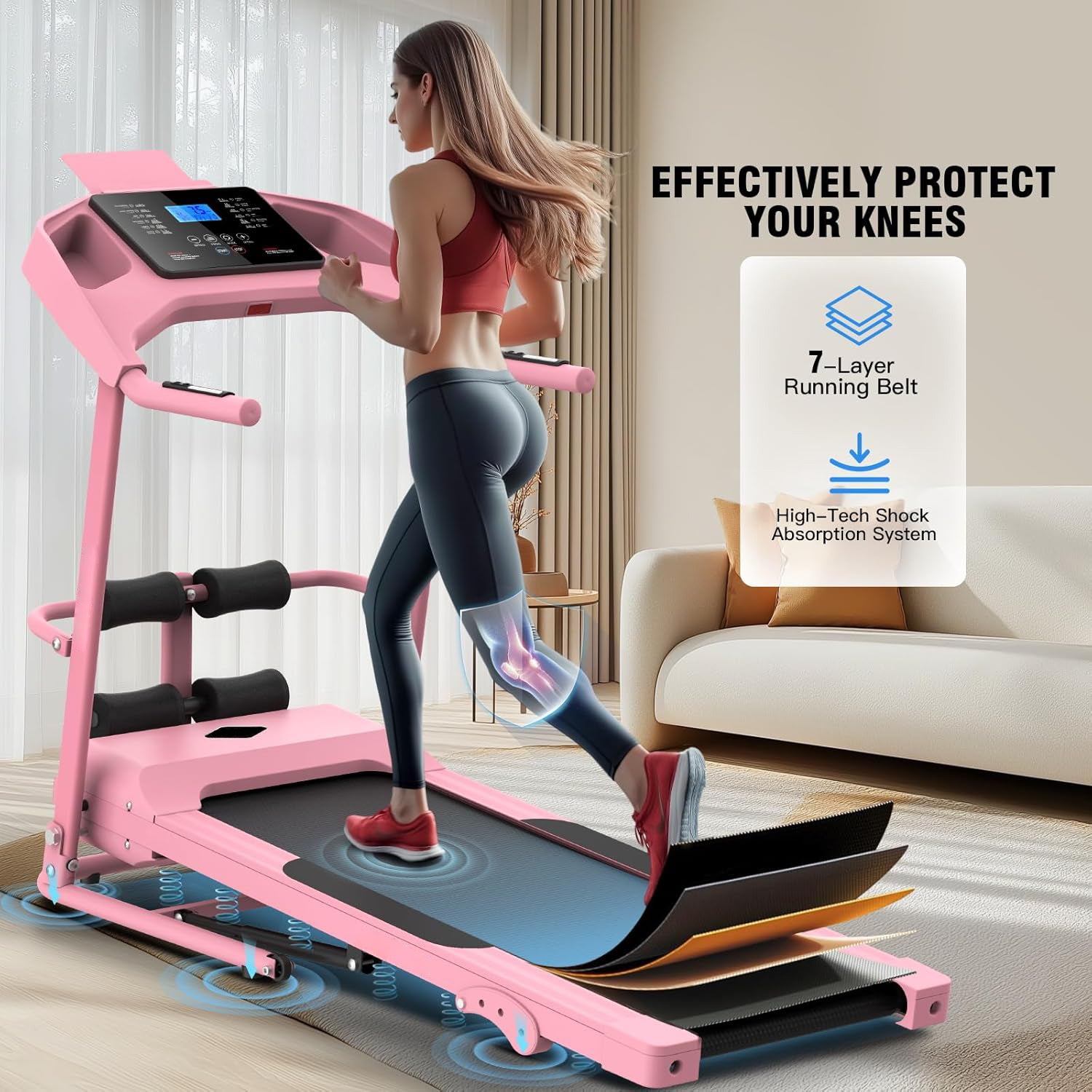 KRISRATE Foldable Treadmill with Sit Up Bench, 2025 Upgrade 3.5HP Portable Treadmills for Home with Incline, Smart LCD Display Body Fat & Heart Rate