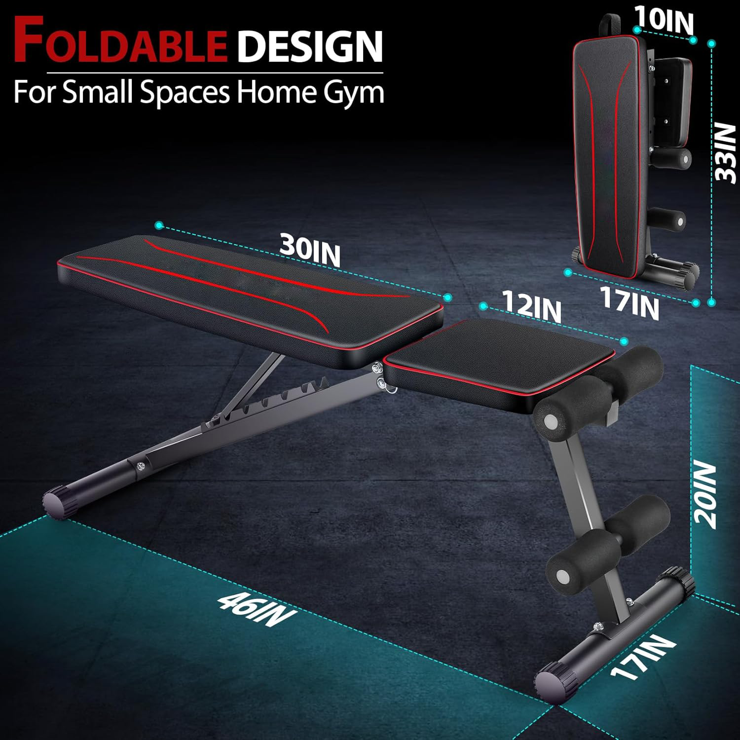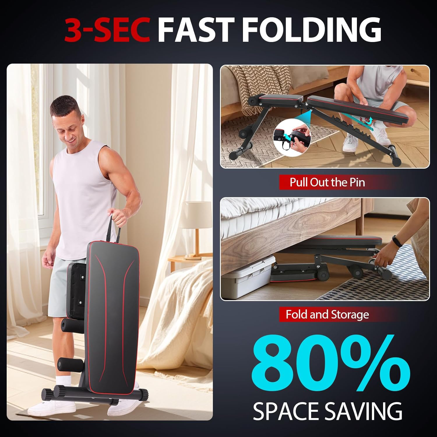 KRISRATE Weight Bench 660lbs Capacity for Home Gym, Fast Foldable Home Gym Bench Press with 8 Adjustable Backrests for Full Body Strength Training
